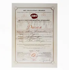 Диплом лауреата и золотая медаль международного конкурса «Art. Excellence. Awards»